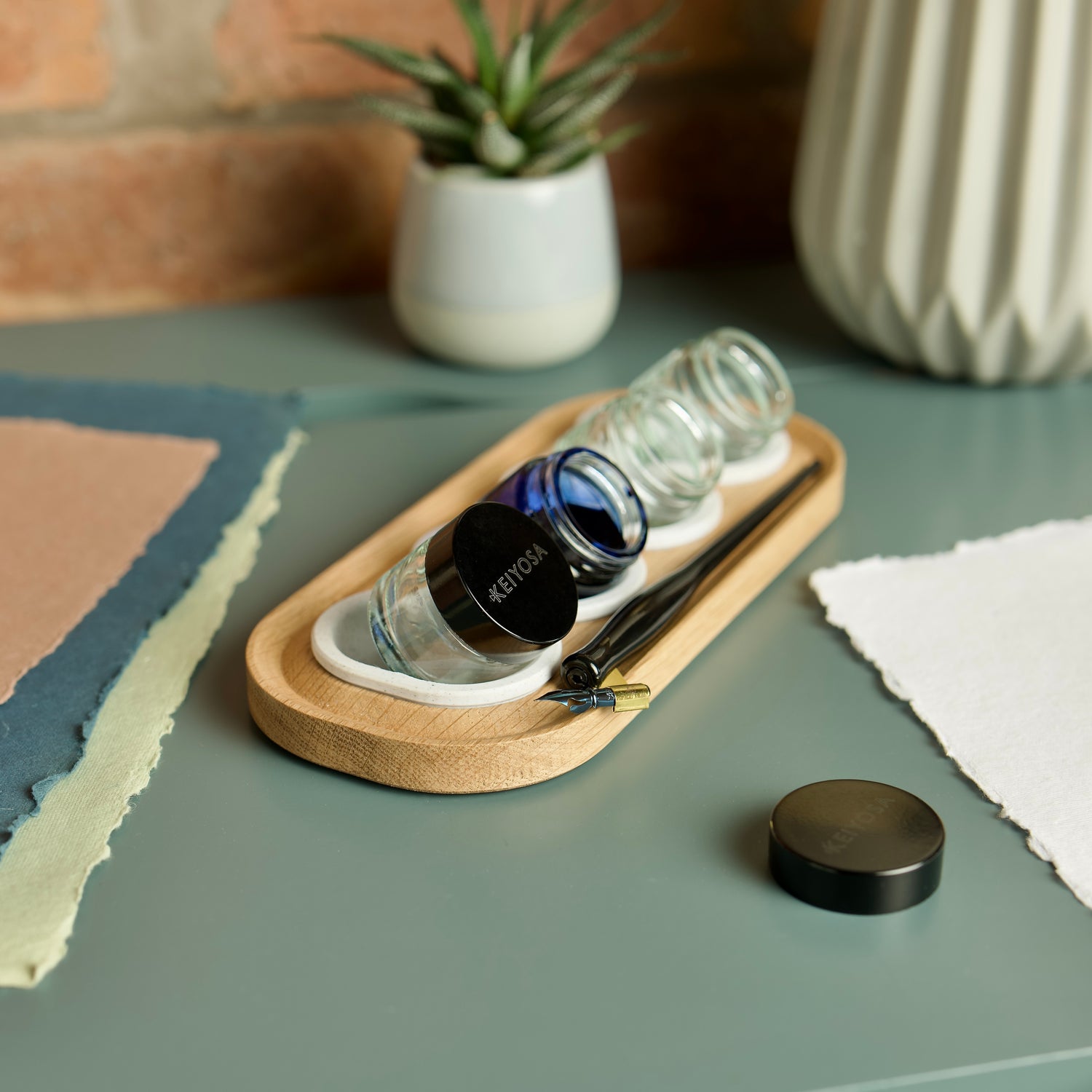 from 40 reviewsI recently purchased the tilt from Keiyosa and I am absolutely in love! It holds my ink jar at such a perfect angle and makes re dipping a breeze! I love how I can also keep the ink jar upright when it is more full and angle to tilt when requires. The inbuilt pen rest means I have a beautiful dual purpose product that I wouldn’t be without!