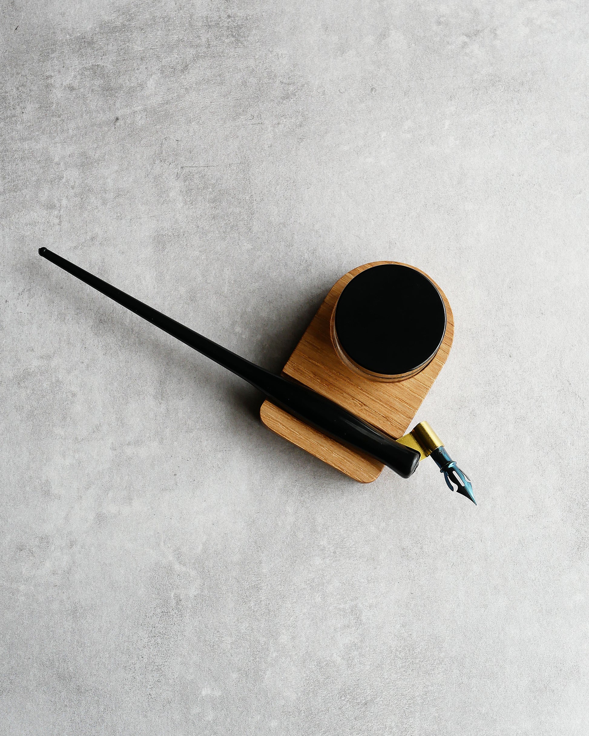 The holes also conveniently hold nibs you're not using. There's also a handy pen rest located at the front of each holder.